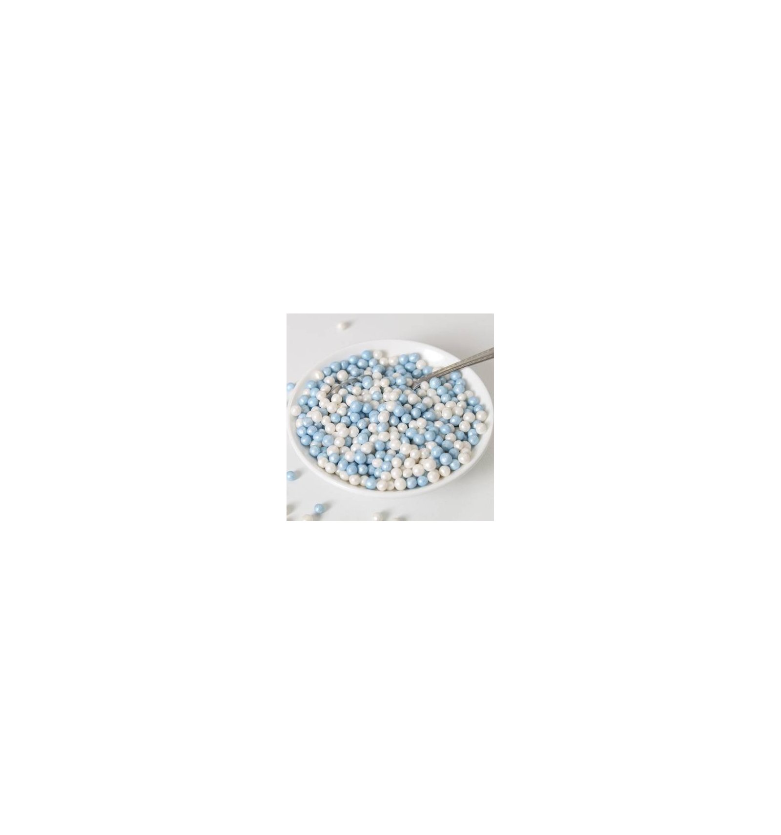 Decorate cupcakes, cakes, desserts, pastries, ice-cream and other treats with these soft blue and white pearls from Cake-Bake!